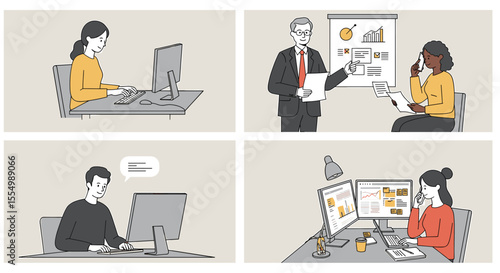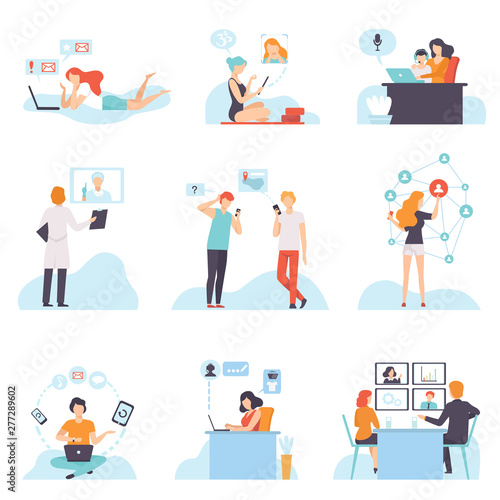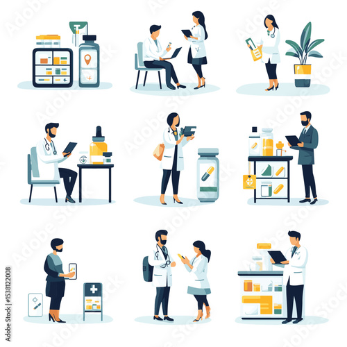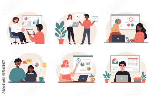 Vektorová ilustrace pilota, letuška, odbavovací obsluha letecké společnosti, agent rampy, agent letenek, bezpečnostní personál a cestující. Letištní lidé ploché symboly, ikony izolované na bílém pozadí.