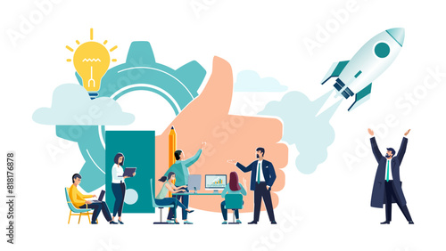 Vektorová ilustrace konceptu letiště. Letadlo, mužské a ženské postavy letištní personál a cestující se zavazadly. Letecké služby, složení obchodních letů pro webový banner, webovou stránku atd.
