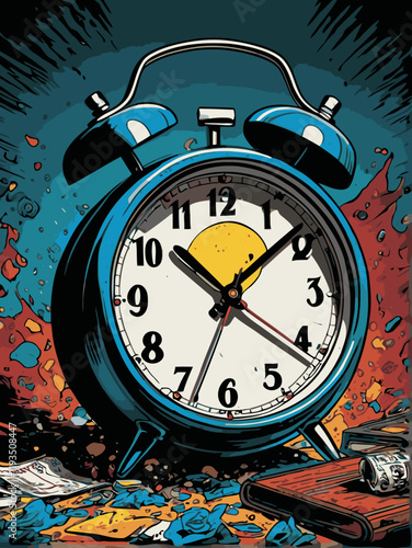 Budík zvoní, aby se ráno probudil. Vektorová ilustrace v retro komiksovém pop art stylu. Alarm text bublina. Dobré ráno.