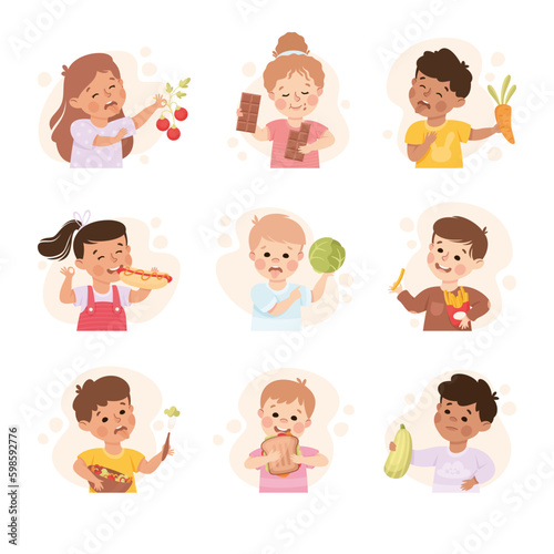 Příznaky alergie, vektorové ploché izolované ilustrace. Dívka trpí příznaky alergické reakce, jako je rýma, kýchání edém zarudnutí svědění kašel vyrážka a slzení.