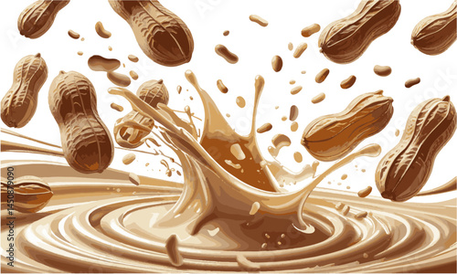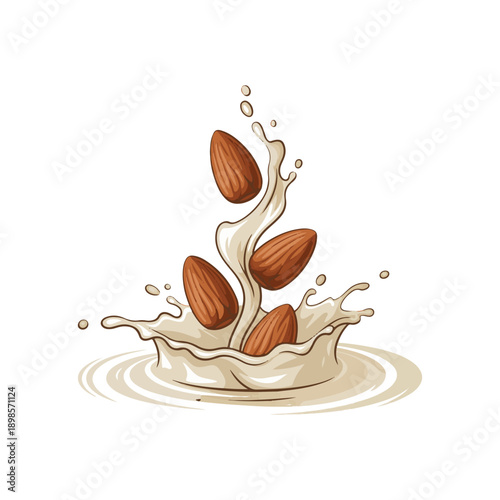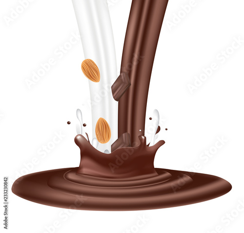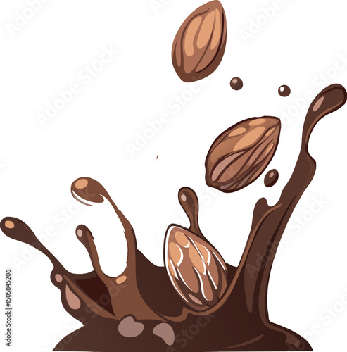 Padající mandlová semena v čokoládě flow realistické vektorové ikony izolovaných na bílém pozadí. Designový prvek značky 3D sweet dessert