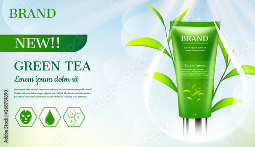 Aloe vera péče o pleť kosmetické vektorové reklamní plakát design šablony. Krása kosmetický výrobek značka propagace složení s kopií prostoru.
