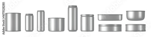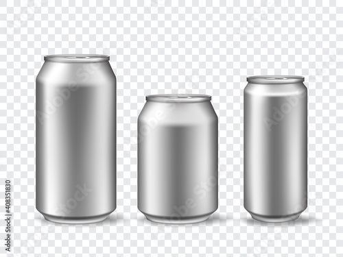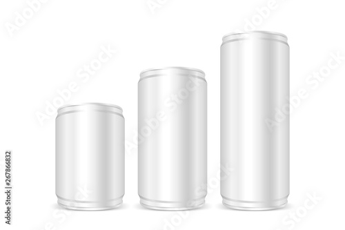 Hliník může maketa izolované vektorové sady. Prázdné pivo nebo soda pít kovovou plechovou láhev. Stříbrná nádoba šablona pro cola nápoj. Balíček pro design značky