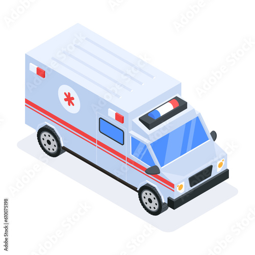 Sanitka auto vektor. Emergency van truck ikona vozidla. Nemocnice záchranář doprava izolovaných na bílém pozadí