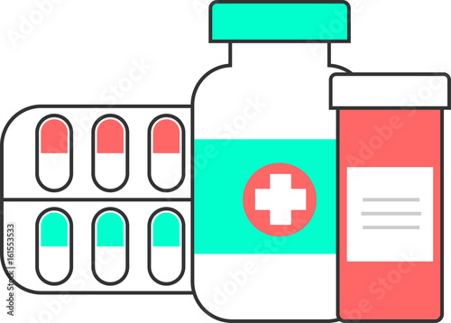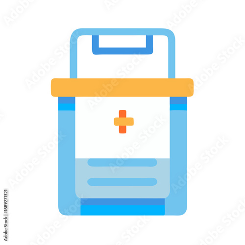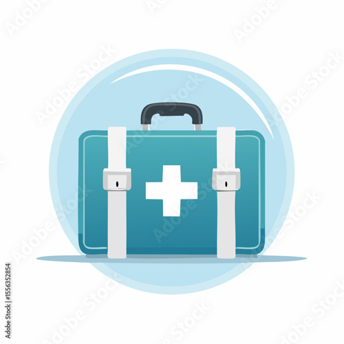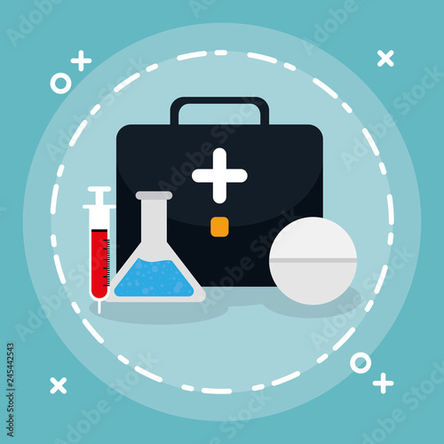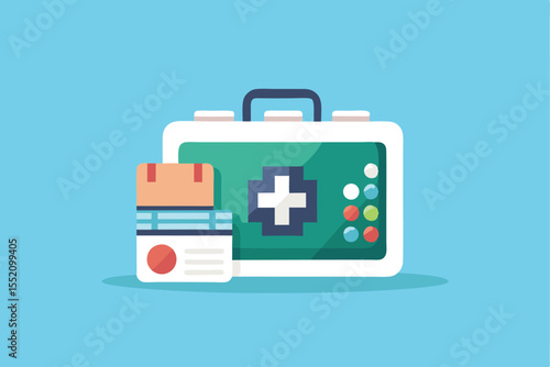 Ambulance lékařská lékárnička vektorová ilustrace. Doctor box case s léky pro nouzovou záchrannou pomoc a kartu Historie onemocnění pacienta. Koncepce medicíny a zdravotnictví