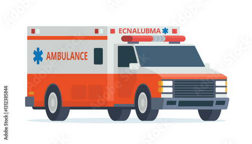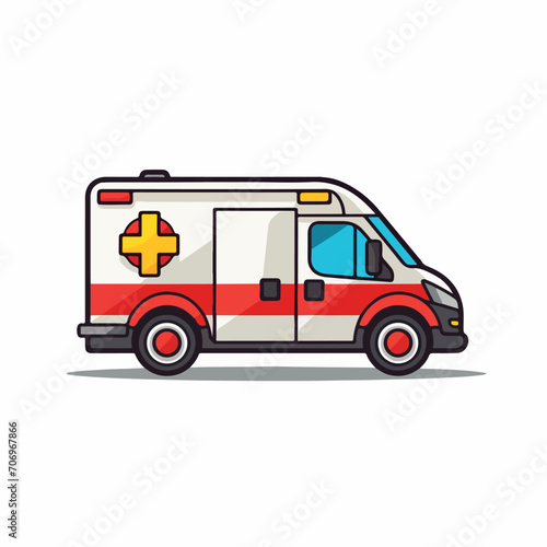 Vektorová ilustrace sanitního vozu a lékaře záchranáře muže s nouzovým vakem stojícím vedle něj. Lékařský pracovník plochý designový prvek, ikona izolovaná na bílém pozadí.
