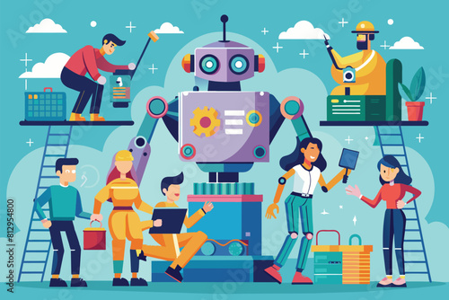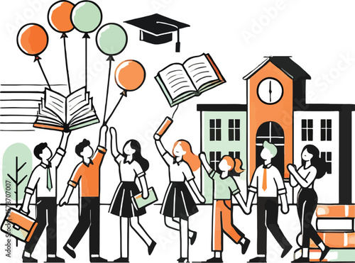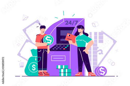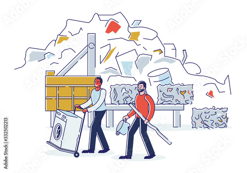 Ruské kolo, mužské a ženské postavy, vektorová ilustrace. Složení atrakcí zábavního parku pro webový banner, webovou stránku atd.