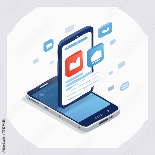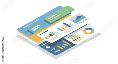 Analytics app concept vector ploché izometrické ilustrace. Smartphony s grafy na obrazovce.