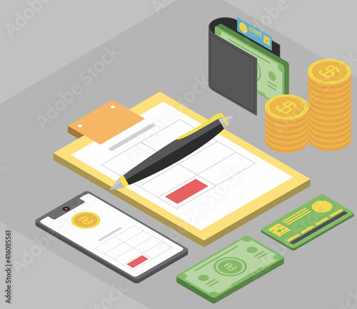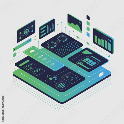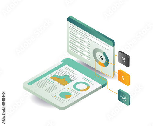 Analytics app concept vector ploché izometrické ilustrace. Smartphony s grafy na obrazovce.