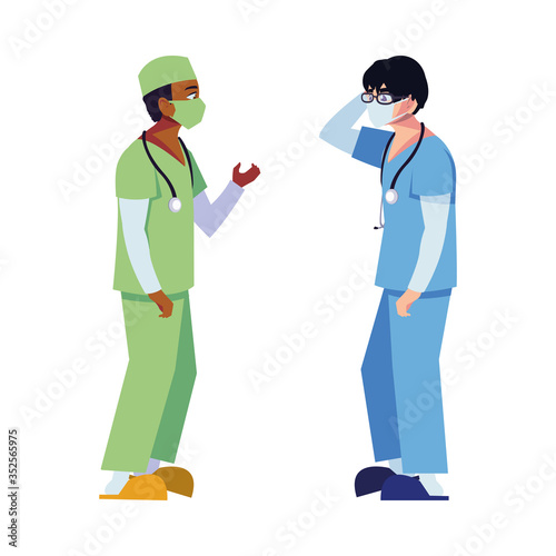 Muž a žena křičí na sebe přes megafony, ploché vektorové ilustrace. Rozzlobený pár se hádá mezi sebou. Rodinný konflikt, hádka.