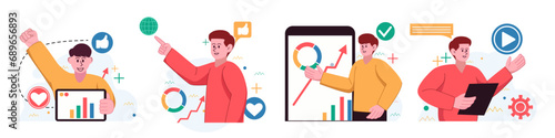 Rozzlobený otec křičel megafonem a nadával svému vyděšenému synovi, ploché vektorové ilustrace. Konflikt otce a syna, vztah rodičů a dětí.