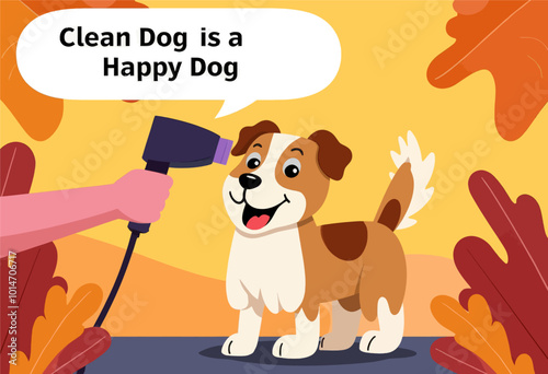 Obrovský pes, pet grooming salon personál micro muž, ženské postavy, vektorové ilustrace. Stříhání psů, složení péče o zvířata pro webový banner, webovou stránku atd.