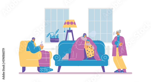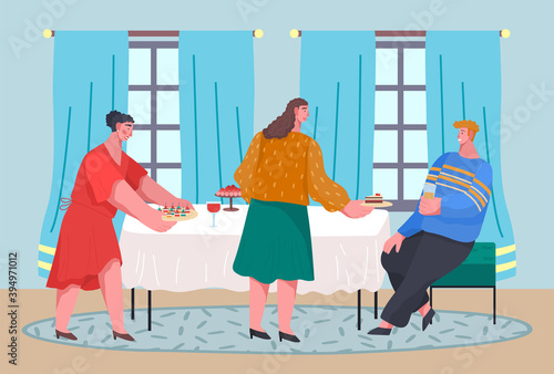 Zvířecí útulek set, vektorové ploché ilustrace. Šťastný pár návštěvě pet útulku se psy a kočkami v kleci. Dívka přijímá roztomilé koťátko, otec se synem daruje peníze na záchranu a podporu toulavých zvířat.