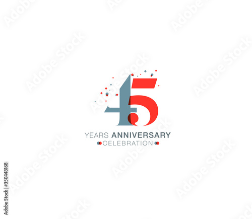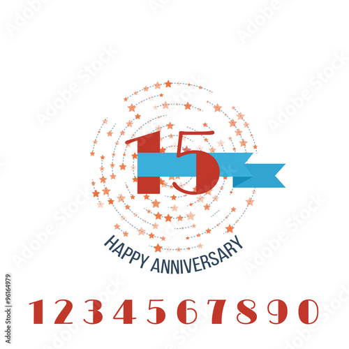 Happy anniversary celebration vektorové ilustrace. Bílé otevřené dárkové krabičky se zlatým hadím a konfetovým výbuchem, červenými číslicemi od 0 do 9 a textem. Výroční stavebnice pro kartu, banner.