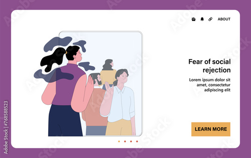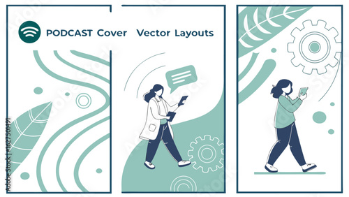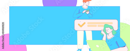 Oznámení horizontální banner šablony set, vektorové ploché styl designu ilustrace. Lidé s megafony a bublinami pro text.
