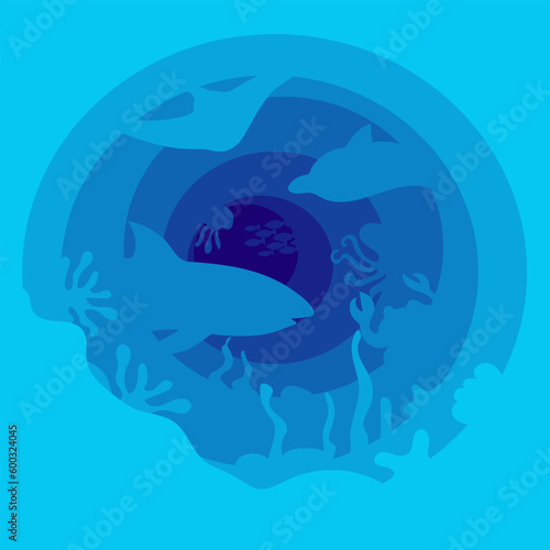 Antarktická scéna jižního pólu s ledovci a siluetami tučňáků, vektorové ilustrace ve stylu papírového umění. Antarktida pro cestovní plakát, pohlednici, webový banner atd.