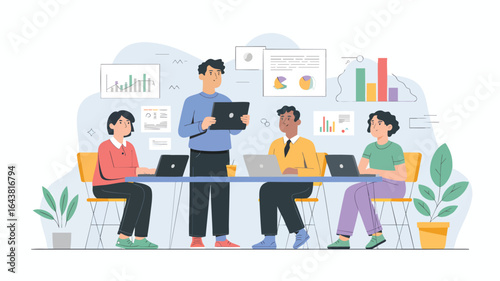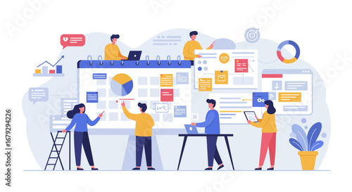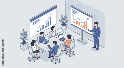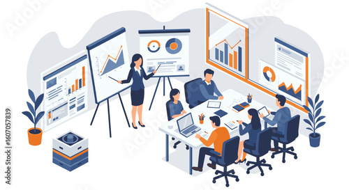 Skupina demonstrantů s transparenty stojící před lidmi, kteří dávají řeč za pódiem, ploché vektorové izometrické ilustrace. Protest proti masce Covid-19, demonstrace. Žádná povinná maska.