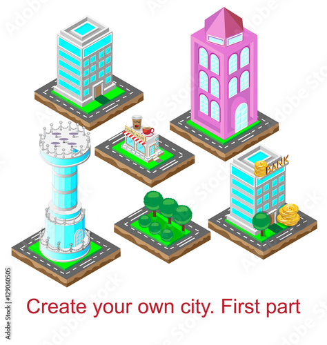 Kroky výstavby bytu. Vektorové izometrické ilustrace výkopu, výztuže základny, odlévání sloupů, instalace podlahy, budovy stěn a připravené k nastěhování.
