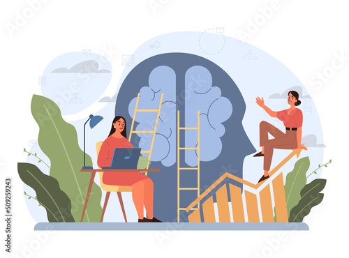 Zemědělci nebo zahrádkáři muž a žena sbírání jablek z jabloně stojící na žebřících, vektorové ilustrace. Koncept sezóny sklizně Apple pro webový banner, webovou stránku atd.