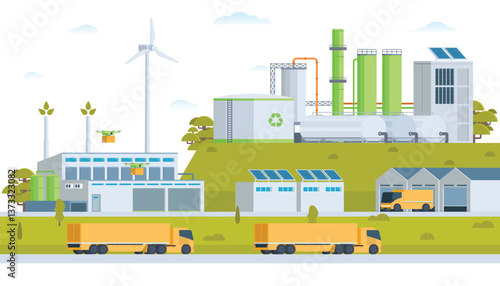 Infografika výroby jablečného džusu, ploché vektorové ilustrace. Sklizeň ovoce, doprava. Linka na zpracování a balení šťávy. Distribuce, prodej, spotřeba. Potravinářství.