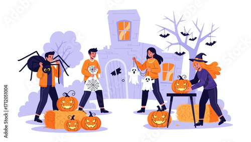 Lidé farmáři sbírají červená zralá jablka, vektorová ilustrace. Sklizeň, koncept sezóny sběru jablek pro webový banner, webovou stránku atd.