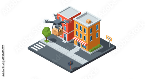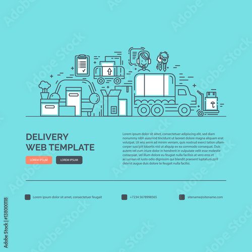 Web banner, šablona. Vektorový izometrický smartphone s autem jedoucím po městské ulici s budovami a jídlem s sebou s mapovou značkou na obrazovce, kopírovat prostor, Číst Více tlačítko.