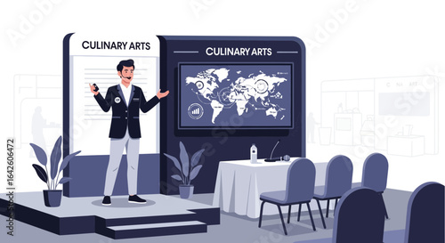 Arabský podnikatel konference, setkání, ploché vektorové izometrické ilustrace. Mezinárodní seminář, workshop nebo školení.