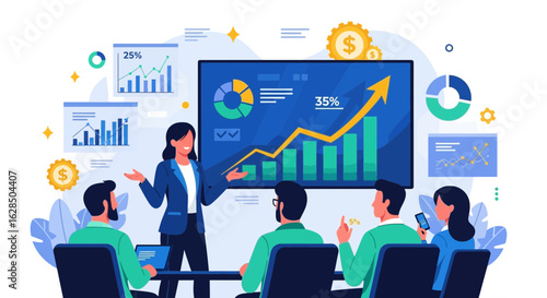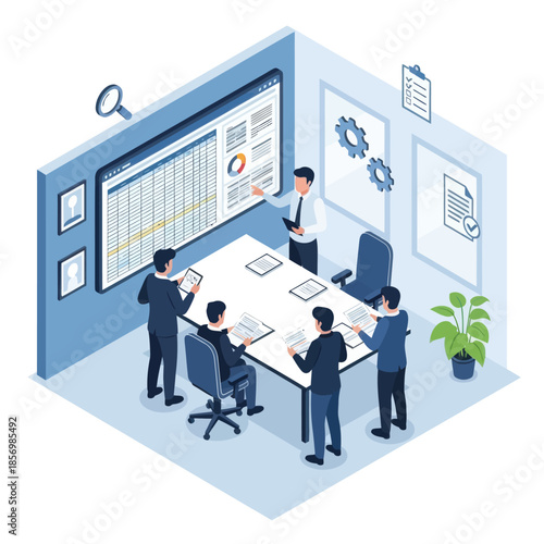 Arabský podnikatel konference, setkání, ploché vektorové izometrické ilustrace. Mezinárodní seminář, workshop nebo školení.