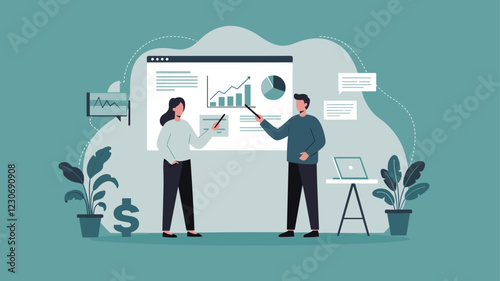 Vektorová ilustrace interiéru archeologické laboratoře a archeologové muži a ženy pracující v laboratoři. Archeologické výpočty koncepce konstrukční prvek v plochém stylu.