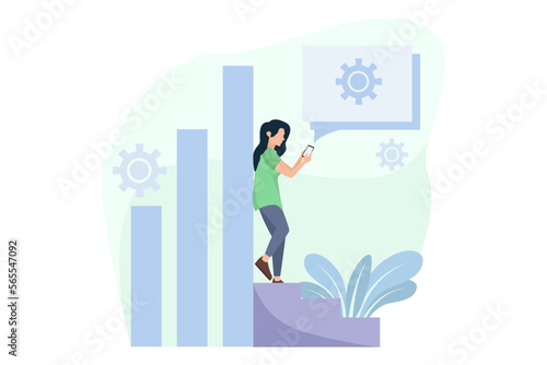 Architekt inženýr čerpá ze svého stolu. Žena praxe kaligrafie písmo a rukopis. Koncept ilustrace. Vektor web design šablony.