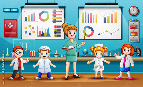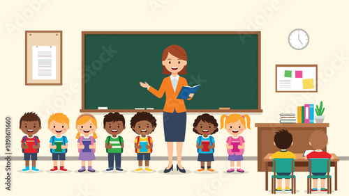 Exkurze muzea umění pro školáky s průvodcem. Vektorové ploché styl designu ilustrace.
