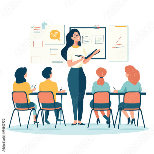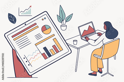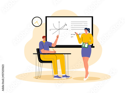 Mikro mužské postavy kreativní lidé umělci malování na obrovském stojanu pomocí tužky a barev, vektorové ilustrace. Výtvarná dílna, umělecké studio, koncept kurzů malování pro webový banner, webová stránka.