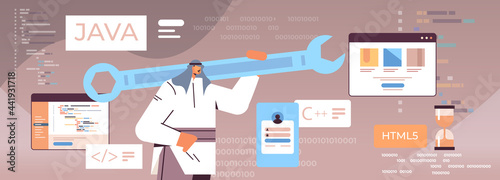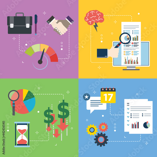 Artificial intelligence technology vector poster template set. Inženýři AI vyvíjející digitální mozek. Inženýrství umělá inteligence software, Informatika, machine intelligence, automatizace.