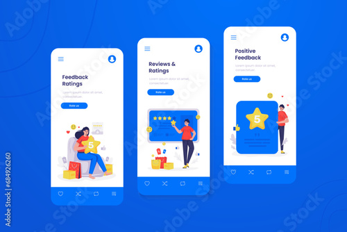 Asijská kuchyně. Kuchař vaření japonské ramen nudlová polévka, losos, tuňák sashimi pokrmy. Obrazovky mobilních aplikací. Šablona vektorového banneru pro vývoj webových stránek a mobilních zařízení. Webové stránky a UI design ilustrace.
