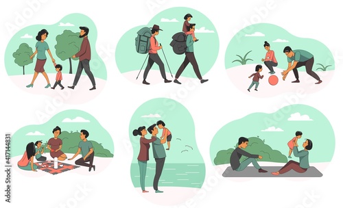 Asijské farmář mužské a ženské znakové sady, vektorové ploché izolované ilustrace. Lidé vysazují sazenice rýže, sbírají čajové lístky a ovoce. Asijské zemědělství, pěstování rýže, zahradnictví, výroba čaje.