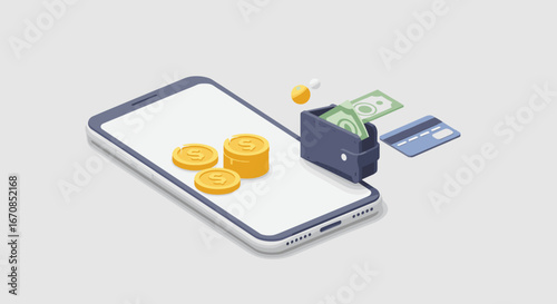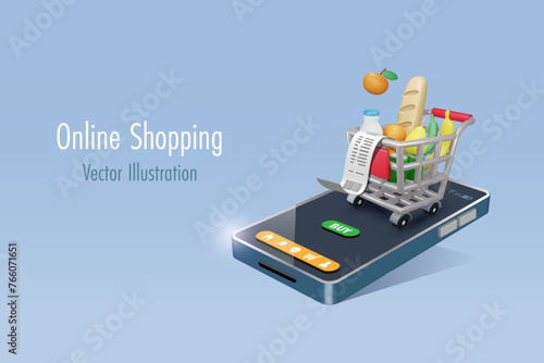 Asijské jídlo on-line koncept. Vektorový izometrický smartphone s aplikací pro doručování asijské kuchyně. Sushi a další odnést asijské jídlo, navigační mapa s PIN markerem a tlačítko Koupit nyní na obrazovce chytrého telefonu.