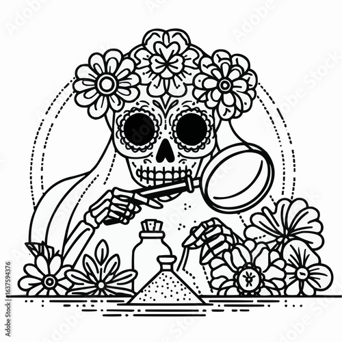 Astronaut prostor pirát vektorové ručně kreslené ilustrace. Lidská lebka ve skafandru, pirátský kapitán klobouk a oko. Šablona designu moderního trička.