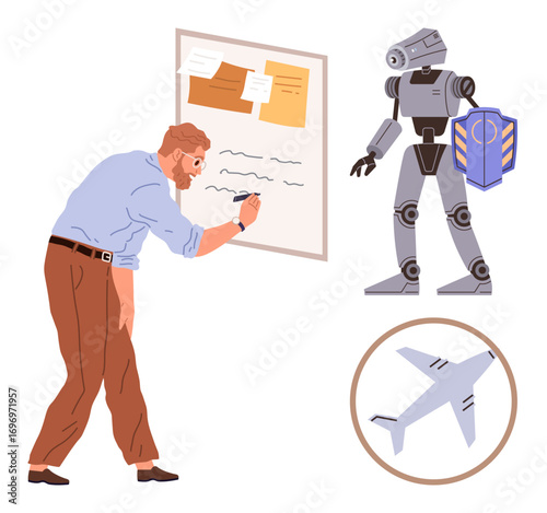 Vektorová ilustrace Astronauta s červenou vlajkou. Koncept průzkumu vesmíru. Space lidé plochý styl designový prvek, ikona izolován na bílém pozadí.