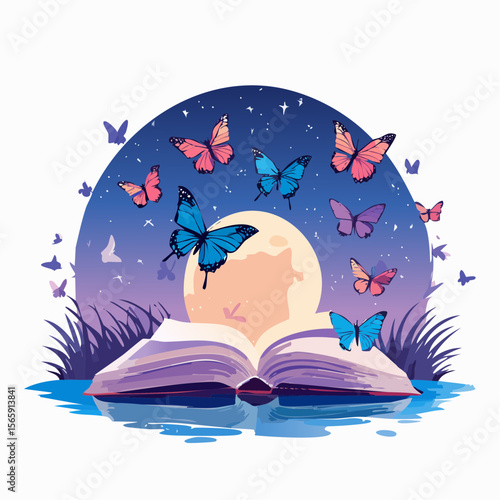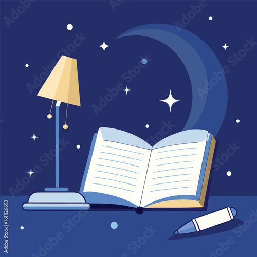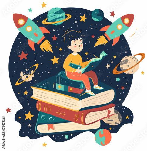 Astronomie vzdělávání plakát vektorové ilustrace s dalekohledem na knihy zásobníku přes různé kosmické tělo v hvězdné obloze