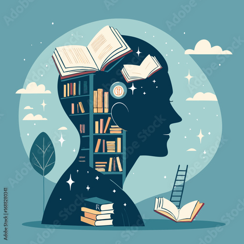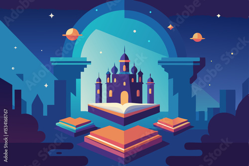 Astronomie věda plakát pozadí s knihou, teleskop vzdělávací věci, observatoř pro Kosmos vesmír studuje nad hvězdnou noční oblohou planety, kometa, meteor a hvězda souhvězdí