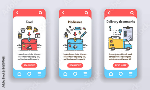 Majitel ateliéru, krejčí, krejčí, módní návrhář. Šicí dílna, studio. Obrazovky mobilních aplikací. Šablona vektorového banneru pro vývoj webových stránek a mobilních zařízení. Webové stránky a UI design ilustrace.