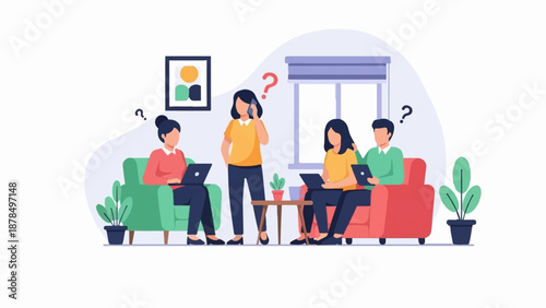 Atelier scéna set, flat vector ilustrace. Švadleny, módní návrháři šití oblečení, vytváření vzorů. Zákazníci si vybírají látku, zkoušejí šaty. Šicí dílna, studio. Krejčovství.