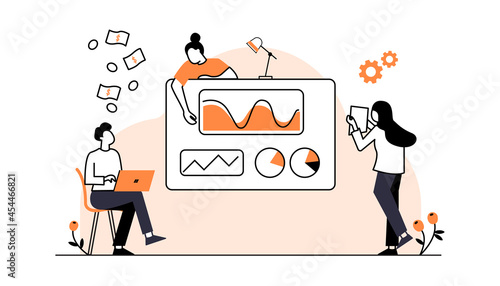 Vektorová ilustrace velkého bankomatového terminálu s možností vkladu a drobných lidí, kteří na své bankovní účty ukládají hotovost pomocí plastové karty. Koncept vkladových transakcí ATM pro webový banner, webová stránka.