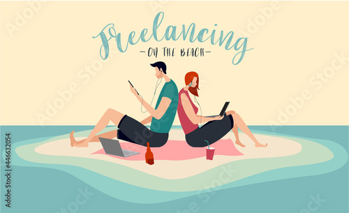 Atraktivní žena pomocí mobilního telefonu, zatímco opalování vektorové ikony izolovaných na bílém pozadí.