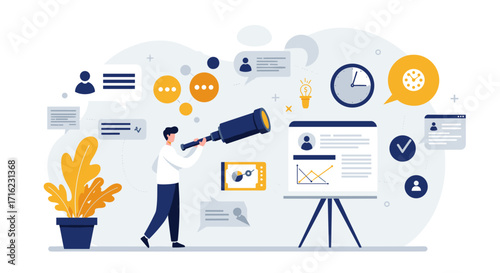 Aukční kladívko, starožitná Busta socha na prodej, dražitel volá cenu s rozhodčím paličkou v ruce, ploché vektorové ilustrace. Aukce umění.