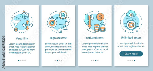 Webové stránky audioknih a mobilní aplikace onboarding obrazovky. Menu banner vektorová šablona pro vývoj webových stránek a aplikací. Audiokniha mobilní telefon app, offline poslech. Tenká linie umění plochý styl.