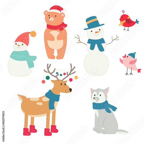 Podzimní sada ikon s roztomilými zvířaty a ahoj podzimní nápisy. Vektorové ilustrace baby jelen liška sova králík mýval ježek medvěd veverka s deštníkem, listy atd. izolovaných na bílém pozadí.
