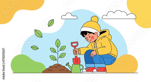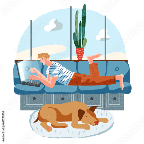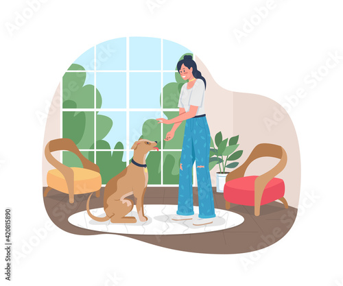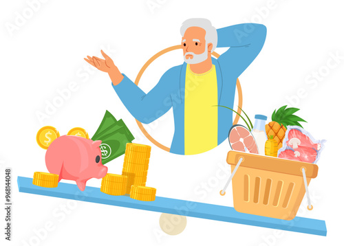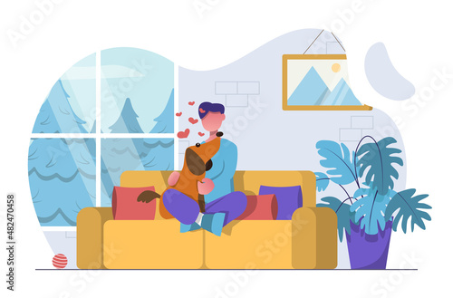 Podzim. Starší žena sedící na parapetu s šálkem horkého čaje, plochá vektorová ilustrace. Bouřlivé podzimní počasí s bleskem a hromem za oknem.