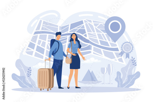 Vyhněte se Cestování, abyste zastavili globální pandemii koronavirů, vektorové ploché ilustrace. Svět čelí pandemii z nového koronového viru covid-19. Turisté stojící po celém světě zeměkoule s uzavřenými hranicemi země