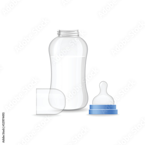 Příslušenství pro péči o dítě mock up set. Vektorové realistické ilustrace bílé ručníky, dudlík, novorozené dítě mléko láhev s silikonové bradavky izolované na průhledném pozadí.
